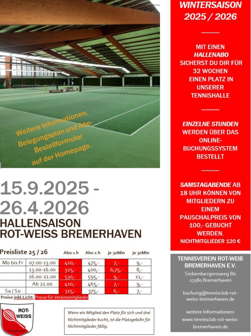 Unsere Webseite benutzt Cookies um Ihnen eine bestmögliche Nutzung der Seite zu ermöglichen. Unsere Datenschutzerklärung enthält dazu nähere Informationen. Unser Hallenbuchungssystem braucht Cookies für die Funktionalität des Login und der Buchungen.